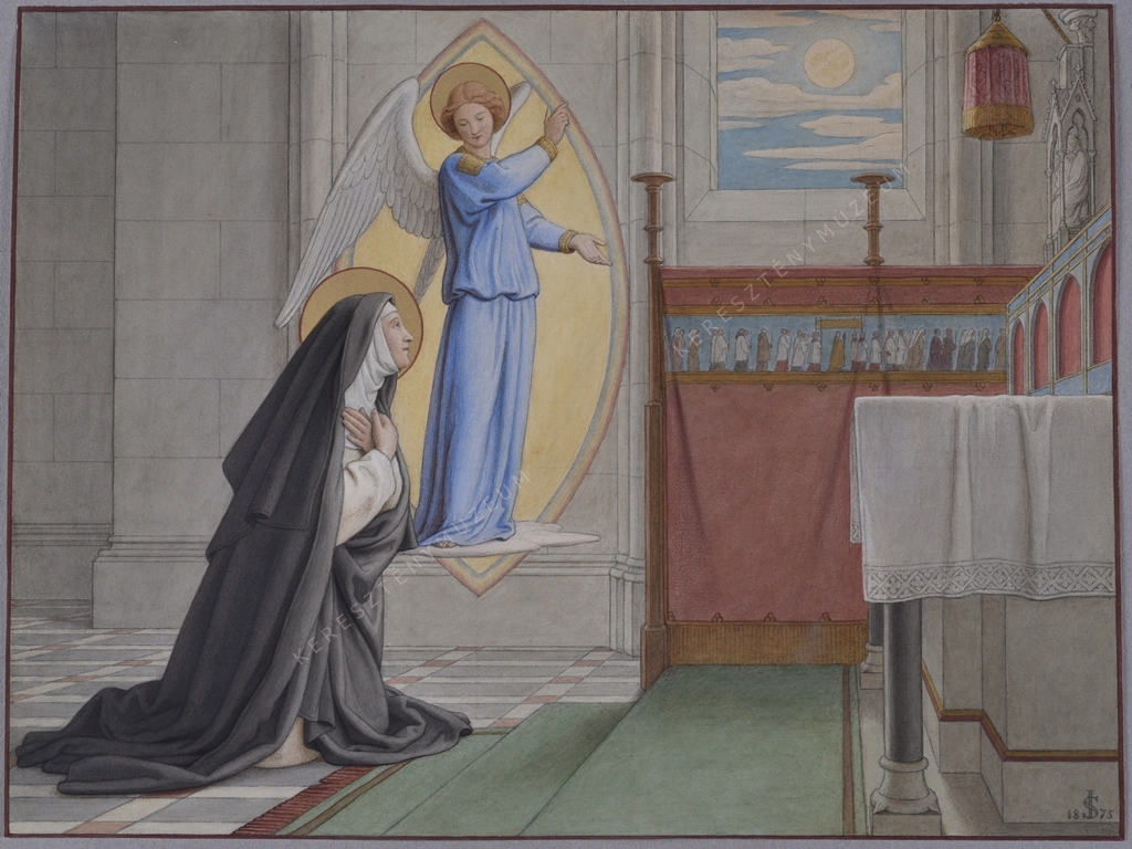 Lüttichi (Liege-i) Szent Julianna (+1258) térdel az Oltáriszentség előtt