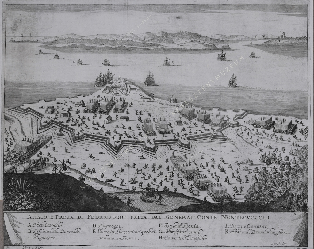 A. Fredricsodde; B. La Cittadella Bersodde. […] I. Truppe Cesaree. K. Attaco di Brandenburghesi.