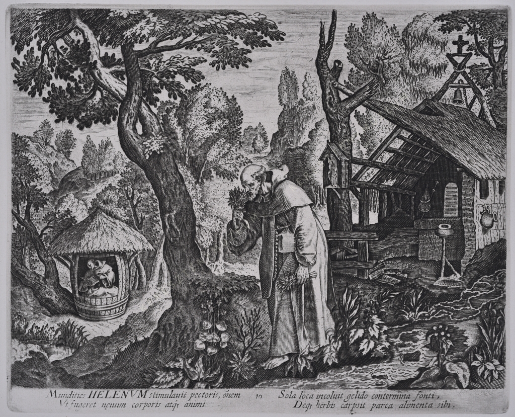 - Hollstein ; Leopoldine van Hogendorp Prosperetti: "Helenus and Dorotheus: Marten de Vos and the Desert Fathers," in: Walter Melion, James Clifton, Michel Weemans (szerk.): Imago Exegetica: Visual Images as Exegetical Instruments, 1400-1700. Leiden: Brill, 2014, 423-448. Domenico de Rossi: Indice delle stampe, intagliate in rame a bulino, e in acqua forte esistenti nella stamperia di Domenico de' Rossi erede di Gio. Giacomo appresso Santa Maria della Pace in Roma. […] 1714, 80. o: Libro de' Santi Eremiti, intitolato Solitudo, sive Vitae Patrum Eremicolarum in 30 fogli mezzi reali intagliato a bulino. Giovanni Giacomo de' Rossiról és a Rossi család kiadói vállalkozásáról: Massimo Ceresa: "De Rossi, Giovanni Giacomo", in Dizionario Biografico degli Italiani, 39 (1991).