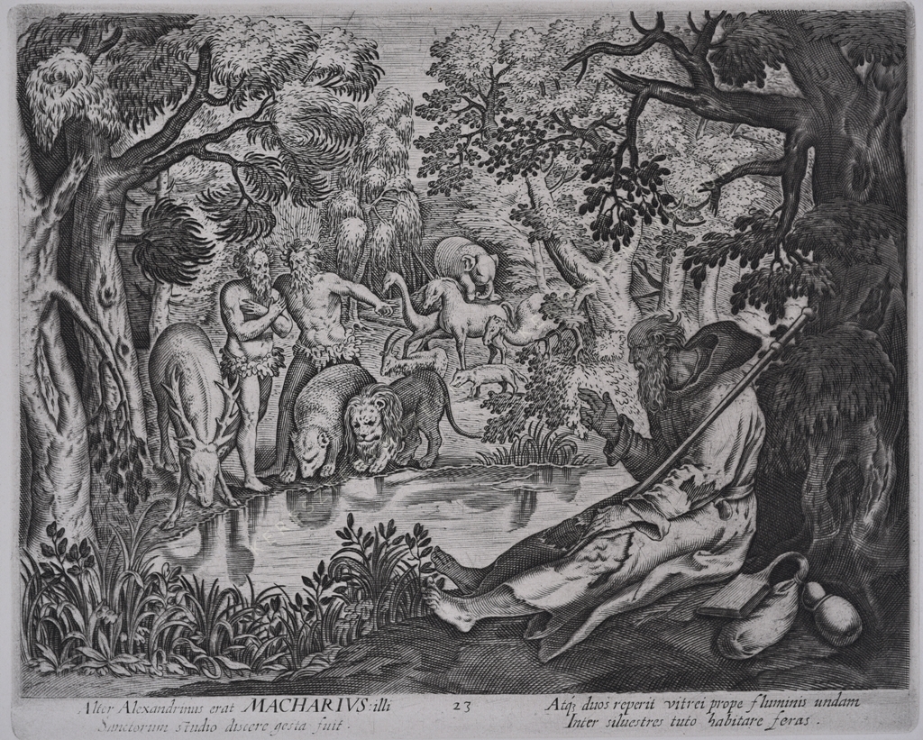 - Hollstein ; Leopoldine van Hogendorp Prosperetti: ""Helenus and Dorotheus: Marten de Vos and the Desert Fathers,"" in: Walter Melion, James Clifton, Michel Weemans (szerk.): Imago Exegetica: Visual Images as Exegetical Instruments, 1400-1700. Leiden: Brill, 2014, 423-448. Domenico de Rossi: Indice delle stampe, intagliate in rame a bulino, e in acqua forte esistenti nella stamperia di Domenico de' Rossi erede di Gio. Giacomo appresso Santa Maria della Pace in Roma. […] 1714, 80. o: Libro de' Santi Eremiti, intitolato Solitudo, sive Vitae Patrum Eremicolarum in 30 fogli mezzi reali intagliato a bulino. Giovanni Giacomo de' Rossiról és a Rossi család kiadói vállalkozásáról: Massimo Ceresa: ""De Rossi, Giovanni Giacomo"", in Dizionario Biografico degli Italiani, 39 (1991).