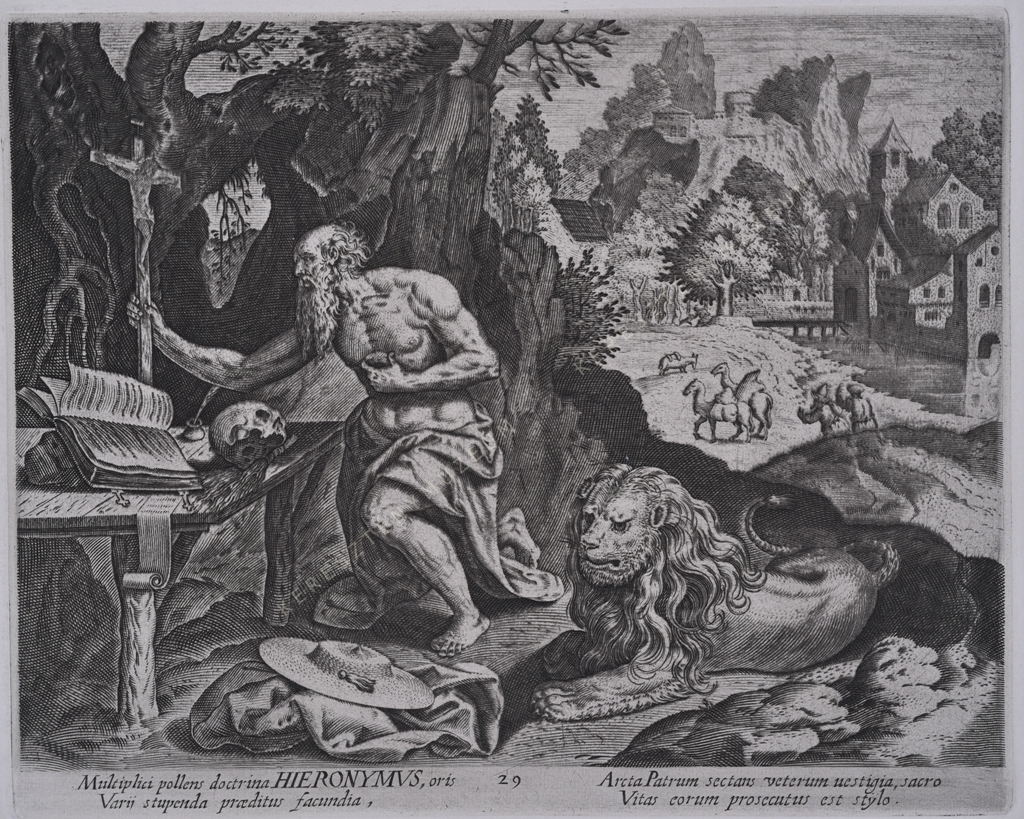 - Hollstein ; Leopoldine van Hogendorp Prosperetti: ""Helenus and Dorotheus: Marten de Vos and the Desert Fathers,"" in: Walter Melion, James Clifton, Michel Weemans (szerk.): Imago Exegetica: Visual Images as Exegetical Instruments, 1400-1700. Leiden: Brill, 2014, 423-448. Domenico de Rossi: Indice delle stampe, intagliate in rame a bulino, e in acqua forte esistenti nella stamperia di Domenico de' Rossi erede di Gio. Giacomo appresso Santa Maria della Pace in Roma. […] 1714, 80. o: Libro de' Santi Eremiti, intitolato Solitudo, sive Vitae Patrum Eremicolarum in 30 fogli mezzi reali intagliato a bulino. Giovanni Giacomo de' Rossiról és a Rossi család kiadói vállalkozásáról: Massimo Ceresa: ""De Rossi, Giovanni Giacomo"", in Dizionario Biografico degli Italiani, 39 (1991).