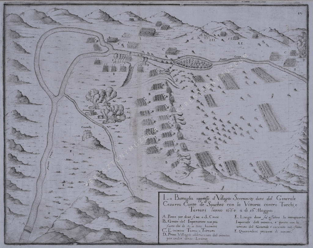 Illusztráció a következő kötetből: Galeazzo Gualdo Priorato: Historia di Leopoldo Cesare. 2. kötet, 1670, 423. o. Zsarnóca ma Žarnovica, Szlovákia. További példány pl. Washington, Library of Congress, LOT 14117, no. 100 (H) [P&P], Milano, Castello Sforzesco, Raccolta delle Stampe "Achille Bertarelli",