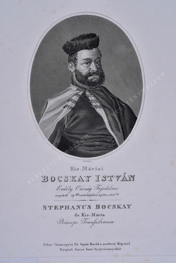 Erdély Ország Fejedelme. meg holt 49dik esztendejében 29. Dec. 1606ba / STEPHANUS BOCSKAY de Kis-Mária Princeps Transilvaniae.