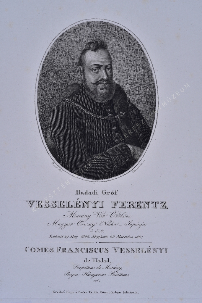 Murány Vár Örököse, Magyar Ország' Nádor Ispánja, 's a' t. Született 29. May 1608, Meghalt 23 Martzius 1667. / COMES FRANCISCUS VESSELÉNYI de Hadad, Perpetuus de Murány, Regni Hungariae Palatinus, cet.