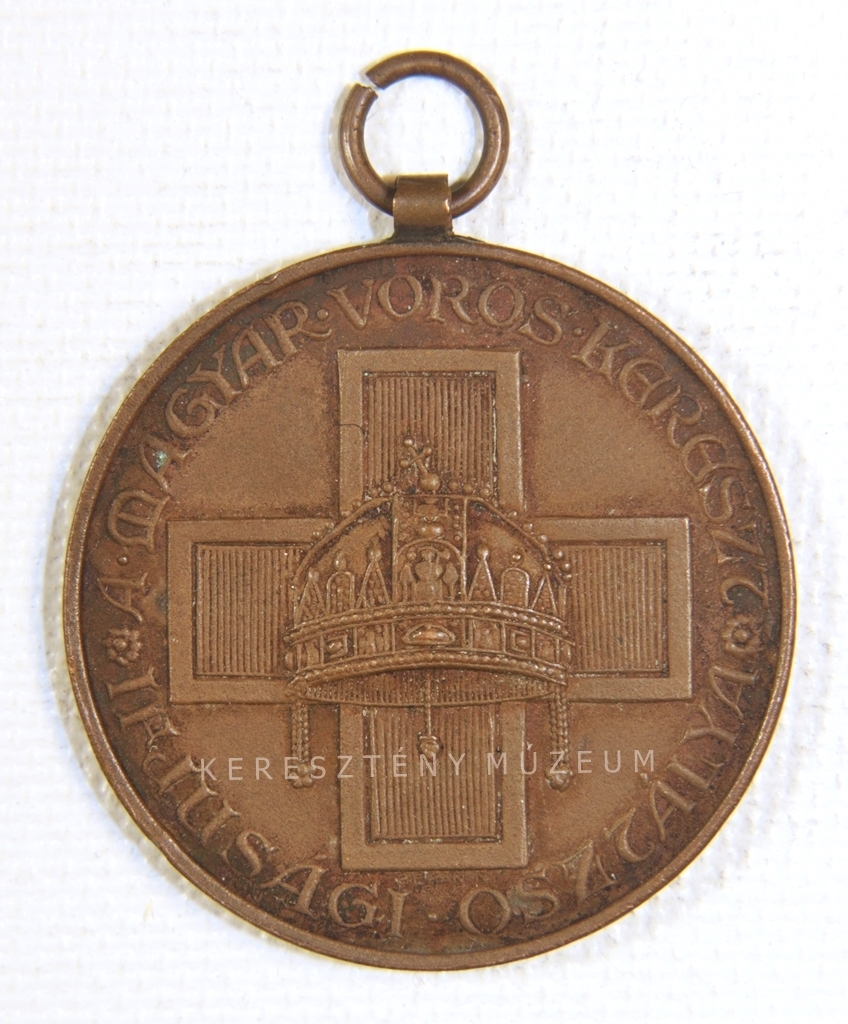 Előlap: a Szent Korona egy egyenlő szárú kereszt előtt