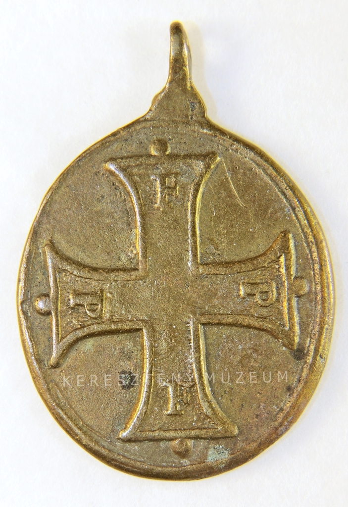 Hátlap: kereszt, a Szent Mihály Testvéri Szervezet jele, a kereszt száraiban: F-P-F-P betűk