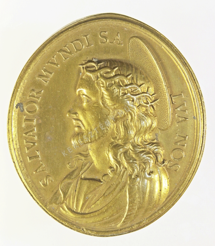 Jézus bal profilú töviskoronás mellképe;
