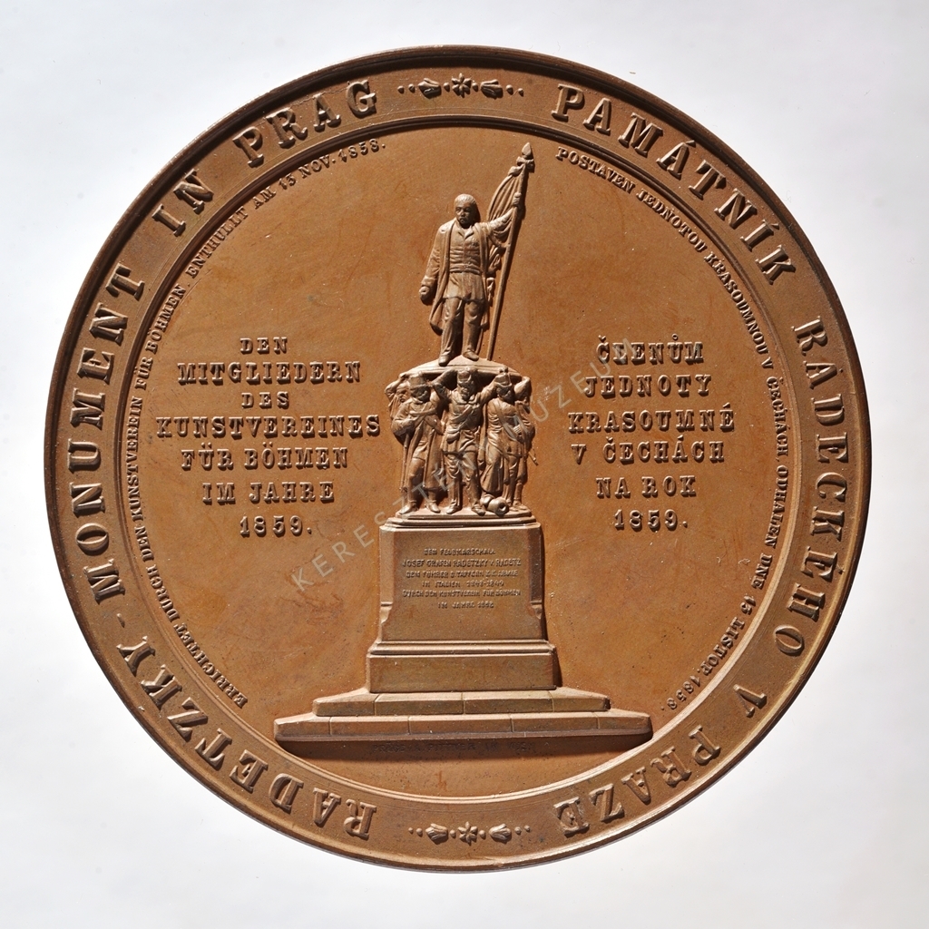 FELDMARSCHALL GRAF RADETZKY V. RADETZ * POLNÍ MARSAL HRABÉ RADECKY Z RADCE * / GEB. IN TREBNITZ IN BÖHMEN AM 2. NOV. 1766. GEST. IN MAILAND AM 5. JAN. 1858 * NAR.V TREBNICI V CECHACH DNE 2. LISTOP. 1766.ZEMR.V MILANÉ DNE 5. LEDNA 1858 *A | DEN MITGLIEDERN DES KUNSTFEREINES FÜR BÖHMEN IM JAHRE 1850 / CLENUM JEDNOTY KRASOUMNÉ V CECHÁCH NA ROK 1859. Í DEM FELDMARSCHALL JOSEF GRAFEN RADETZKY V. RADETZ DEM FÜHRER D. TAPFERN K.K. ARMEE IN ITALIEN 1848-1849 DURCH DEN KUNSTVEREIN FÜR BÖHMEN IN JAHRE 1852 | RADETZKY MONUMENT IN PRAG * PAMÁTNÍK RADECKÉHO V PRAZE / ERRICHTET DURCH DEN KUNSTFEREIN FÜR BÖHMEN ENTHÜLLT AM 13. NOV. 1858. POSTAVEN JEDNOTOU KRASOUMNOU V CECHÁCH ODHALEN DNE 13 LISTOP. 1858.