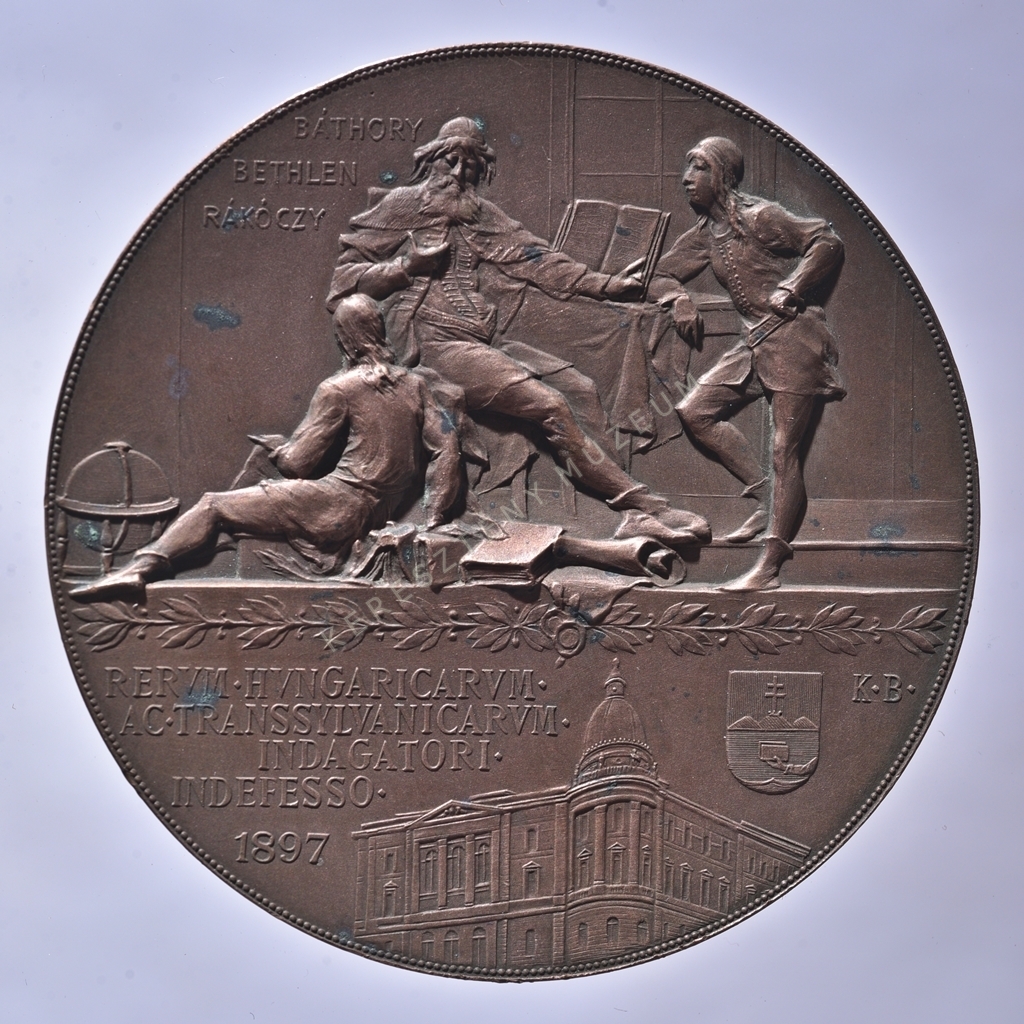 Hátlap: losztott mezőben fent: három férfialak, mellettük felirat: BÁTHORY BETHLEN RÁKÓCZY; lent: