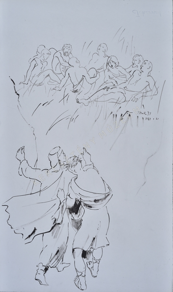 Álló kompozíció: Vergilius és Dante észreveszi a fűben ülő, éneklő lelkeket.
