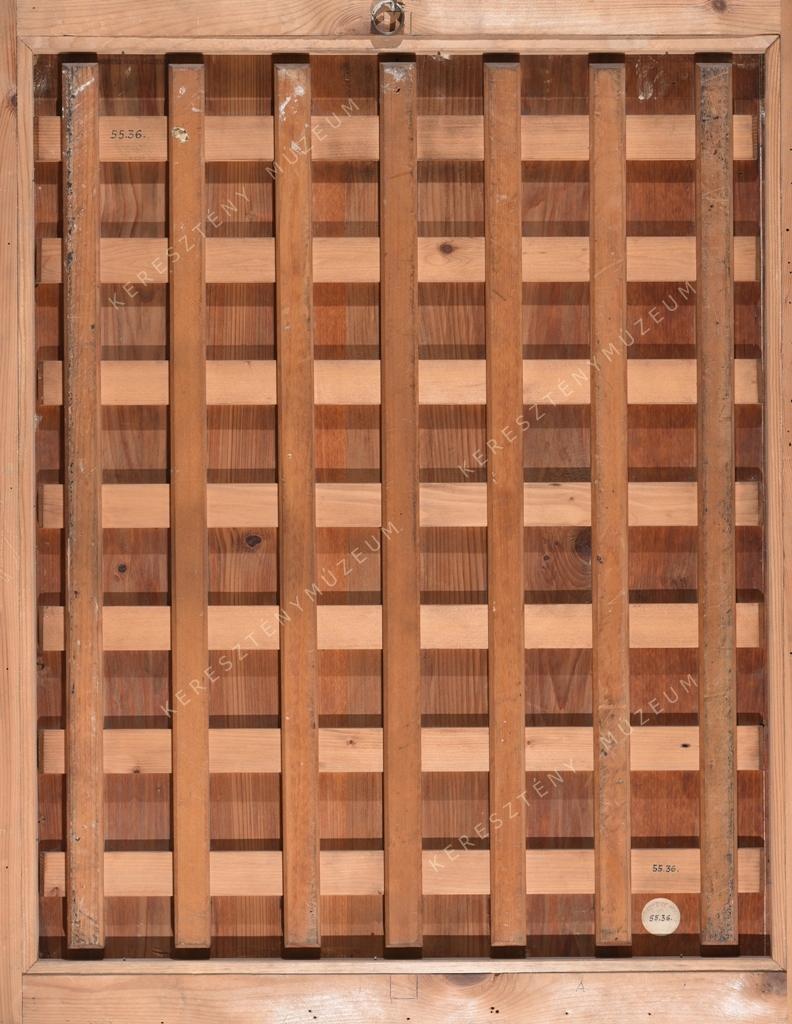 Az 55.36-os tábla háttérmustrája elpusztult, retusált háttere az 1969-es restaurálás alkalmával készült. Hátoldala parkettázott.