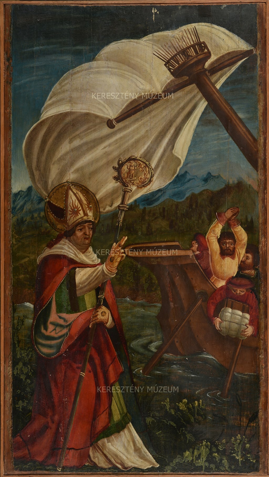 A két összetartozó táblakép (55.106, 55.107) egy szárnyasoltár eredetileg mindkét oldalán festett mozgószárnyához tartozott, amelyet utólag kettéfűrészletek. Nincs biztos támpont annak eldöntéséhez, hogy Szent Vid és Szent Miklós legendájának epizódjai az oltárszárny ugyanazon vagy elentétes oldalát díszítették-e. Mindkét ábrázolást jelentős átfestések borították; ezek eltávolítását követően vált láthatóvá, hogy a Szent Videt mutató jeleneten teljes arcok hiányozta. Ezek a hiányok a szándékos rongálással kiszúrt szemekkel együtt nagy valószínűséggel arra utalnak, hogy az oltár a reformáció képrombolásának esett áldozatul.