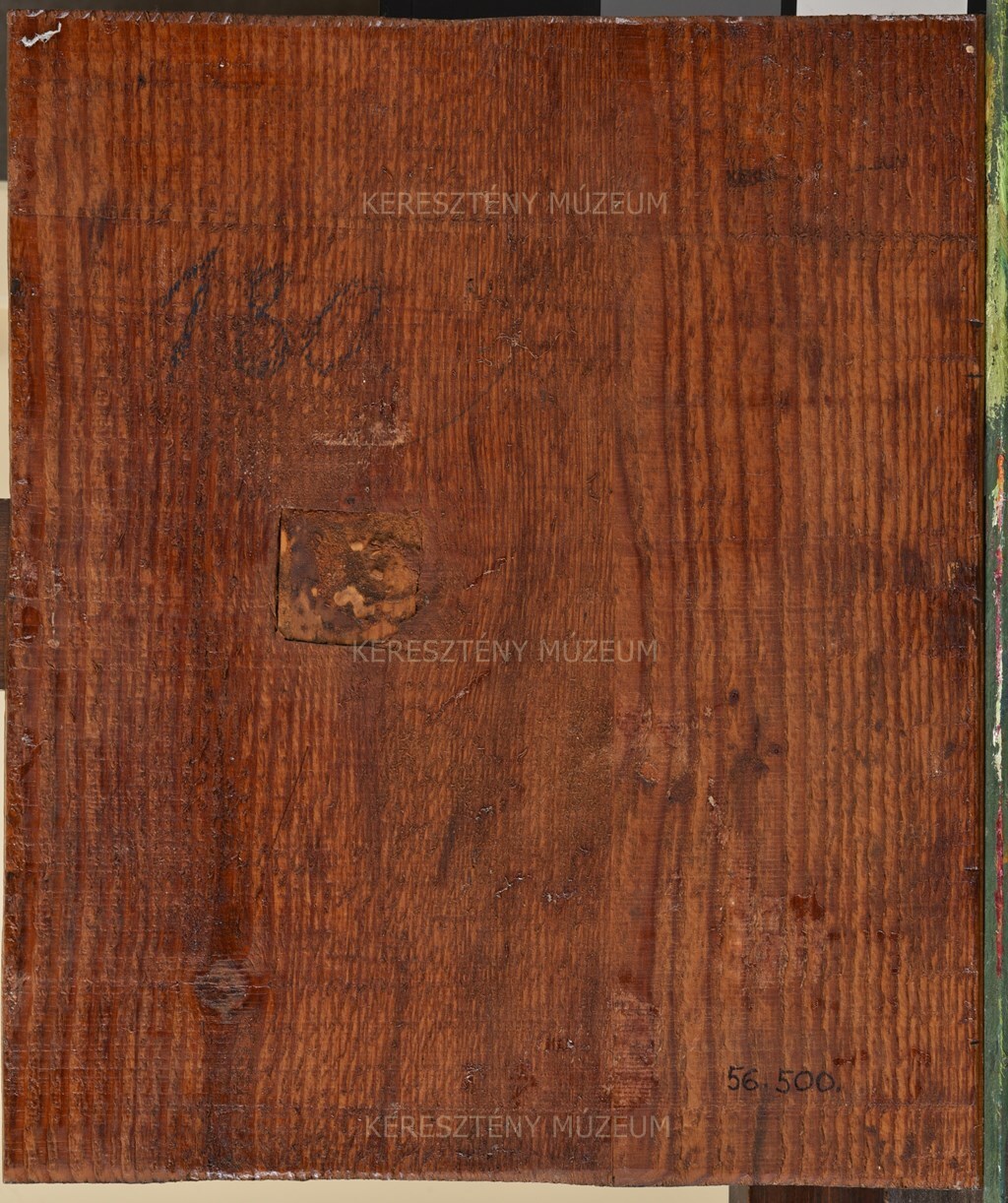 Szárnyasoltár festett szekrényfelét alkotó táblakép töredéke, amelyet alján mintegy fele részben megcsonkítottak, kompozíciója azonban minden bizonnyal két ép társához (ltsz. 56.497, 56.498) hasonló lehetett. Fölső részén jól láthatóak az egykori faragott, mérműves rátétdísz alapozásba bekarcolt körvonalai. A képet két oldalról a mérművet tartó vékony, kis fejezetekkel ellátott oszlopok keretezték. Az 56.497, 56.498 és 56.499-es számon leltározott, ugyancsak apostolokat ábrázoló táblaképekkel eredetileg egyazon szárnyasoltár ünnepi oldalához tartozhatott.