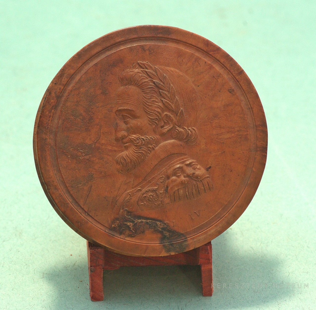 Leemelhető fedelén IV. Henrik bal profilú képe. Teknőchéj betéttel.