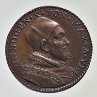 Az érmet 1649. december 24-én bocsátották ki a Szent Kapu nyitásának alkalmából. Az érem előlapja Gaspare Morone verőtövének felhasználásával készült: a pápa arcképe jobb profilból. Vállán mozetta és stóla, fején camauro. A hátlap Giovanni Cormano metsző munkája. A nyitott Szent Kapun belépő pápát ábrázolja, előtte az asszisztencia, a kapu előtt térdelő és imádkozó zarándokok. Fentről fénysugarak árasztják el a bejáratot. Körirat magyarul: Ez az Úr kapuja