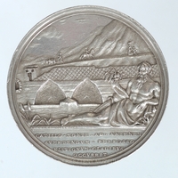 előlap: GREGORIVS • XVI • PONT • MAX • AN • IV | hátlap: CATILLO • MONTE • AD • ANIENEM|AVERTENDVM • PERFOSSO|ELVVIONVM • CLADIBVS|OCCVRIT