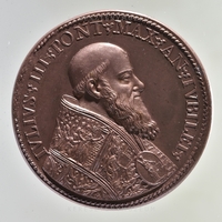 Későbbi, újravert érem az 1550-es Szentév emlékére. A 16. század vége és a 17. század eleje között, valamint a 19. században is kiadásra kerültek másolati sorozatok. Előlap: hibás, sodronymintás peremben a pápa arcképe jobb profilból, vállán palást, a Szent Kapu kibontásának képével. A felirat a 118. Zsoltár idézete magyarul: "Ez az Úrhoz vezető kapu, az igazak mennek be rajta" A csaton az Igazságosság ( Iustitia) nőalakja mérleggel alakja. Hátlap: sodronymintás gyűrűben a Szent Kapu pillérei, timpanonban a Szentlélek galambja. Az architrávban levél-füzérek között figurális ábrázolások.