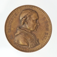 Jubileumi érem, amelyet 1826-ban vertek Franciaországban, a Szentév meghosszabbításának emlékére. Előlap: a pápa arcképe jobb profilból. Vállán hermelin-prémes mocétum és stóla, fején pileolus. Stóláján a pápai jelvények és a sas, mint családi címerállat. Hátlap: A pápai hatalom jelképei: Péter apostol kulcsai és a pápai tiara. Középen szárnyas angyalfej. A feirat francia nyelvű: jubileumi szentév 1826.