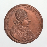 Előlap: BENED • XIV __ PONT • MAX • A • IVB • | Hátlap, mondatszalagon: DOMVS • DEI • ET • PORTA • COELI •