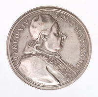 Éves, 1751. június 29-én kiadott érem a Szentév zárásának emlékére. Előlap: a pápa arcképe jobb profilból, vállán hermelin-szegélyes mozetta és stóla, fején camauro. Stóláján a pápai címere. Hátlap: a pápa az asszisztencia közreműködésével elhelyezi a Szent Kapu záró tégláit. Balról a Svájci Gárda testőrei. A bazilikában, a még nyitott kapuban, püspökök csoportja.