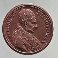 Előlap: * BENEDICT * * XIII * PONT * MAX | Hátlap: • RESERVAVIT• ET•CLAVSIT•ANN•IVB •