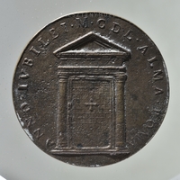 Restitúciós érem, amelyet Francesco Barberini bíboros megrendelésére készítettek, több változatban, és éremképpel. Előlap: a pápa mellszobra bal profilból. Vállán pluviálé, fején tiara. Hátlap: a befalazott Szent Kapu homlokzata, az ajtón görög kereszt. 1449 karácsonyának előestéjén hirdette ki az Immensa et innumerabilia kezdetű bullájával, a jubileumi Szentévet, és elrendelte, hogy vissza kell térni VI. Kelemen pápa rendelkezéséhez: a jubileumi Szentéveket csak minden ötvenedik évben kell tartani.