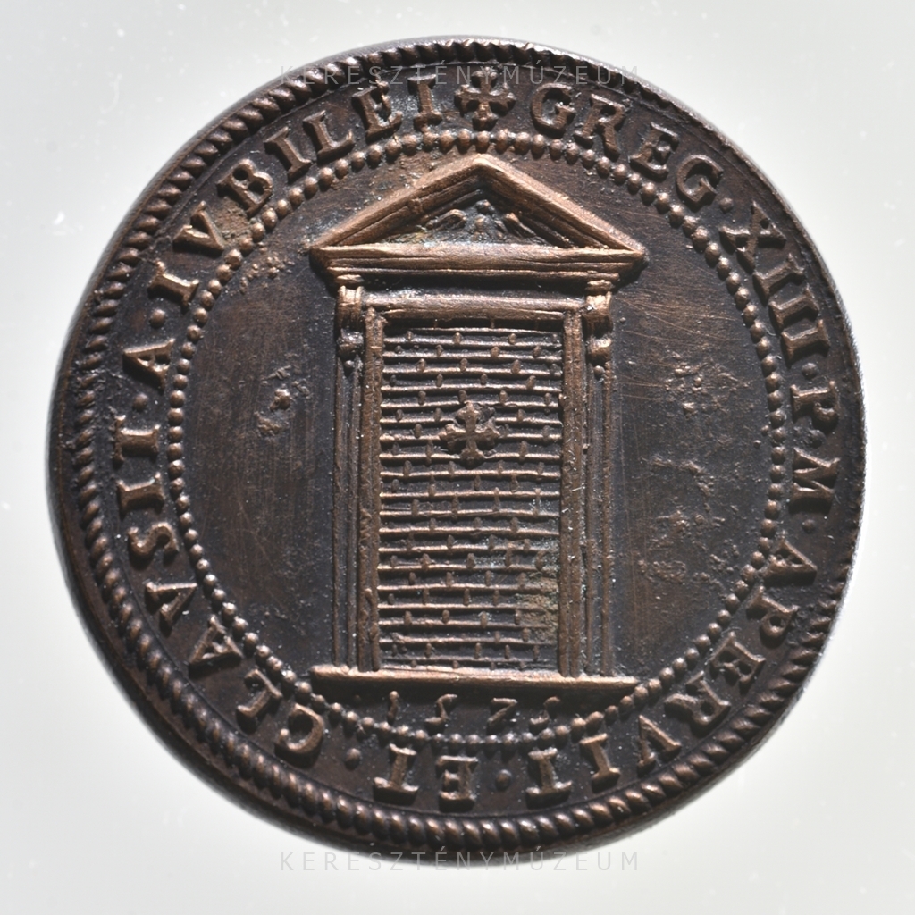 Előlap: • GREGORIVS • XIII • PONT • MAX • ANNO • IVBILEI • | Hátlap: ✠ GREG • XIII • APERVIT • ET • CLAVSIT • A • IVBILEI