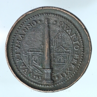 A Flaminio-obeliszk felállítása Rómában, a Piazza del Popolo-n. Előlap: kettős gyöngysoros keretben a pápa jobb profilú portréja. Vállán palást, feje fedetlen. Hátlap: kettős gyöngysoros keretben körirat, mezőben az obeliszk képe, a Piazza del Popolo-n.