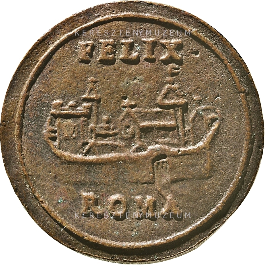 Perem nélkül. Előlap: a pápa mellképe balról, vállán palást, fején camauro. Hátlap: belső körgyűrűben Róma városának látképe, a városfalakkal