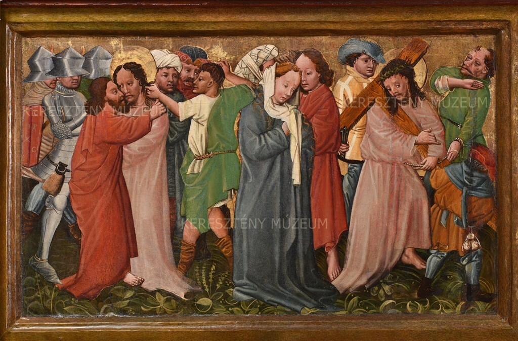 Blasius Höfeltől Karl Lemann gyűjteményén át került Ipolyi Arnoldhoz. “Predella vagy ilyennek részeiből összeállított kép. Három részből áll: a középső képen Judás csókja és a kereszt vitele, a két külső Krisztus születése és mennybemenetele. Utóbbiak más kéztől valók. XV. sz. vége. A képréteg bomladozóban.” (Lakatos-Balla 2012, 292)