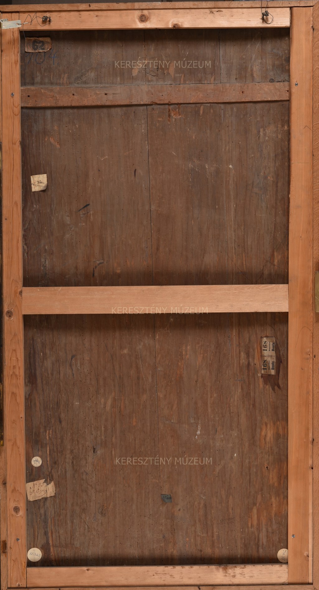 Ipolyi gyűjtemény. Johann Friedrich Fromm gyűjteményéből (No 408) vásárolta meg Ipolyi Arnold. “97. Tryptychon közepe: a Kalvária, igen sok alakkal. Az előtérben két pribék az Úr ruhájáért dulakodik. XV-XVI. sz. Deszkán sok átfestéssel.” (Lakatos-Balla 291)