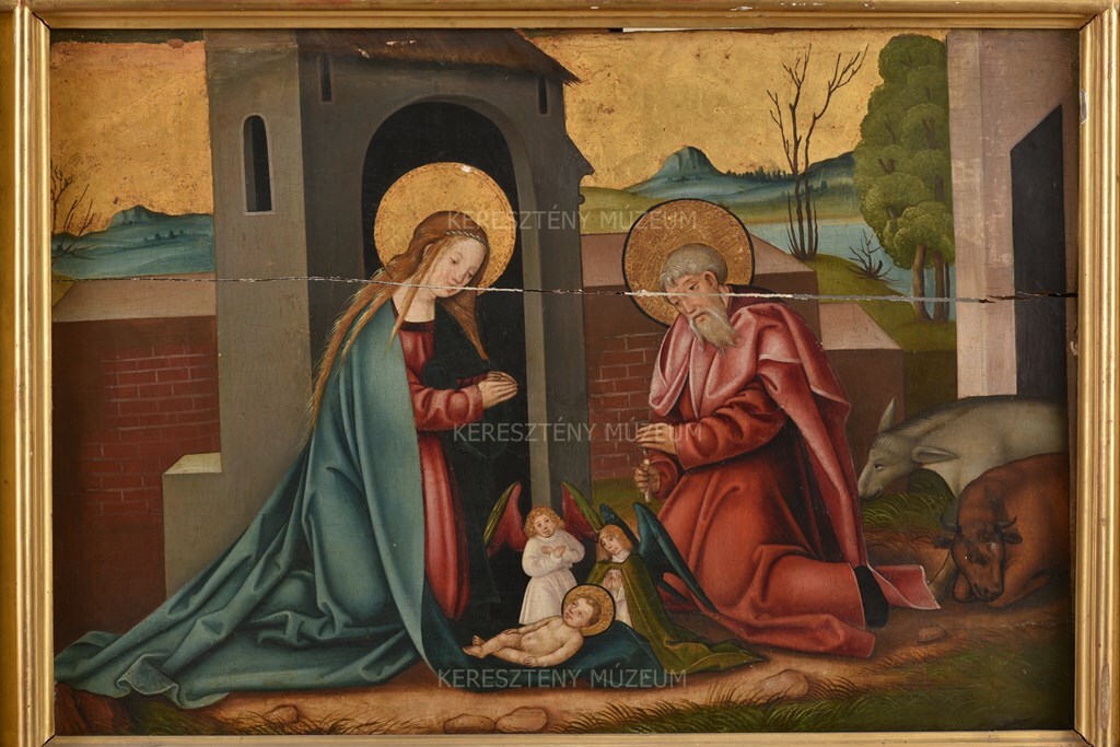 Valószínűleg Ipolyi Arnold gyűjteményéből “167. Jézus születése. Aranyalapon, deszkára festve. XVI. sz. (Ha eredeti!) Megrepedve.” (Lakatos-Balla 275)
