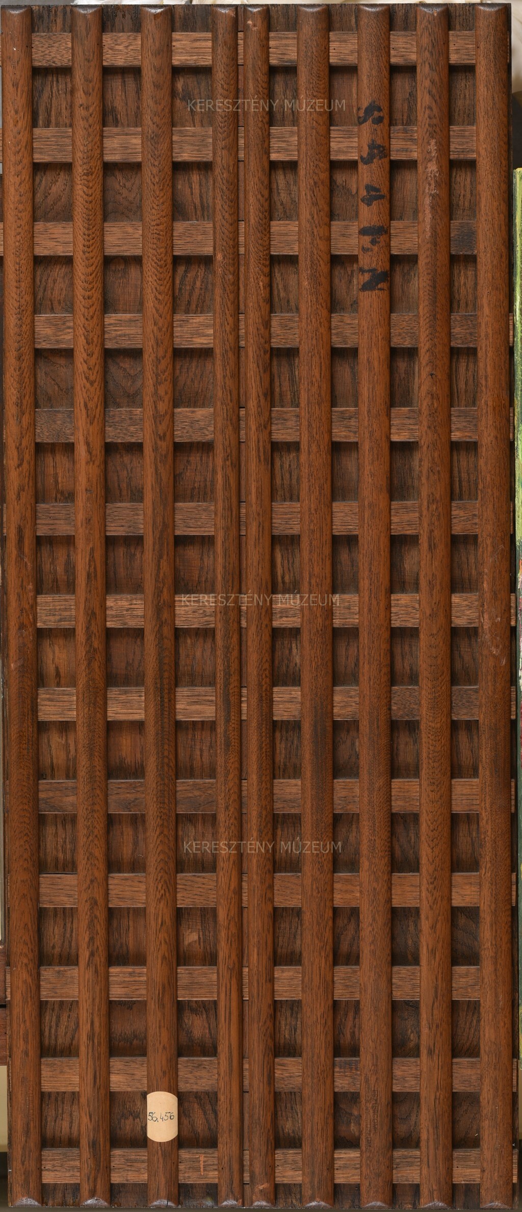 Hosszanti oldalukból valószínűleg levágtak. A Szent Péter megbízatása jeleneten, írásszalagon a Mt 16:16-19 bibliai sorokon alapuló szavak olvashatóak: Filius Dei vivi/ tu es Petrus. A felirat eleje (“Tu es Christus”) valószínűleg a tábla megcsonkításának esett áldozatul.