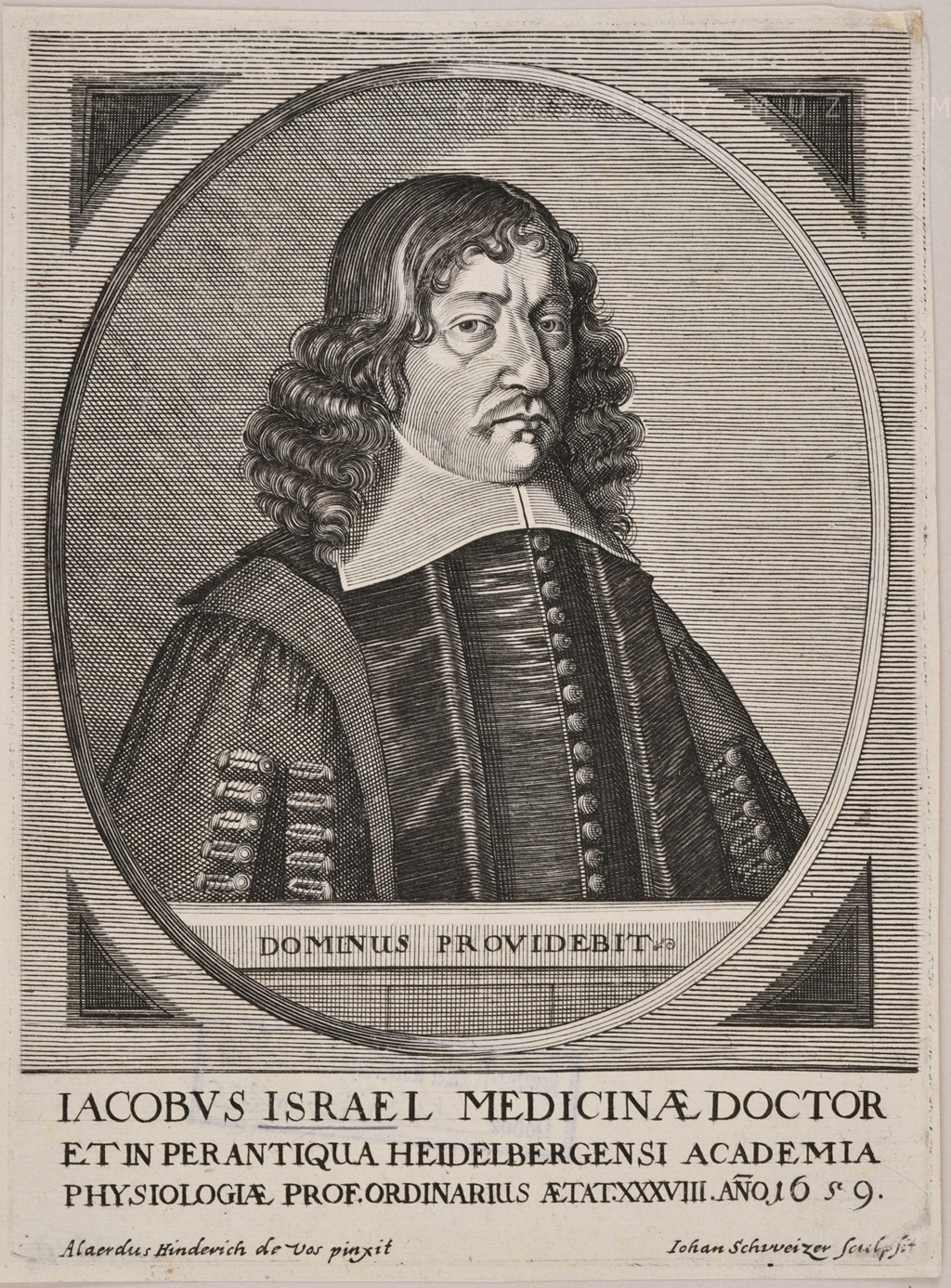 Jacobus Israel Medicinae Doctor / et in perantiqua Heidelbergensi Academia / physiologiae prof. ordinarius aetat. XXXVIII Anno 1659.