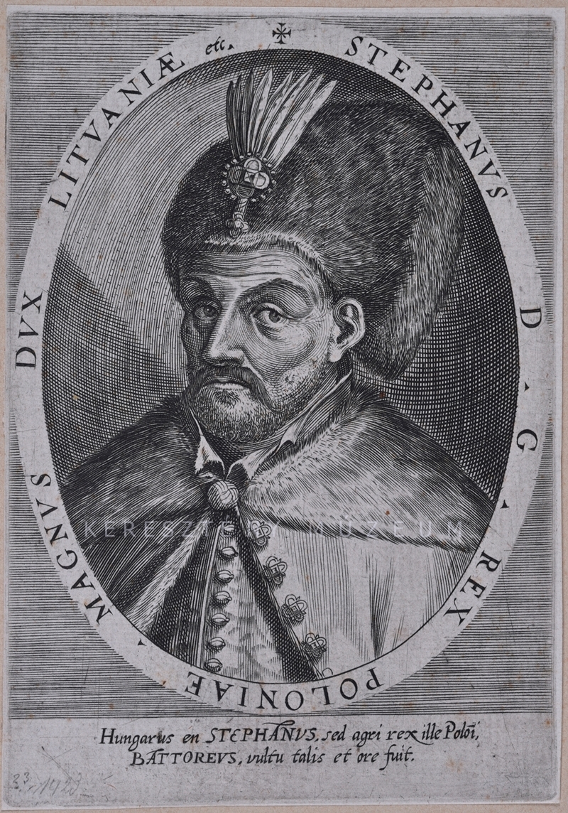 Hungarus en STEPHANVS, sed agri rex ille Poloi, / BATTOREVS, vultu talis et ore fuit.