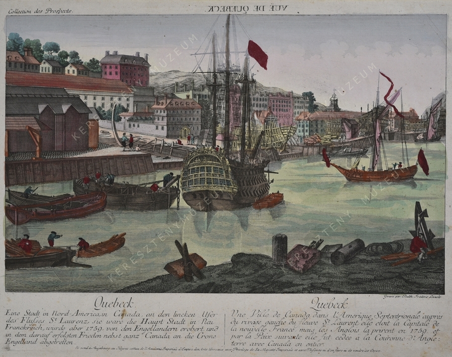 Quebeck. / Eine Stadt in Nord-America, in Canada, an den Lincken Ufer des Flußes St. Laurenz, sie ware die Haupt Stadt in neu Frankreich, wurde aber 1759. von den Engelländern erobert, und in dem darauf erfolgten Frieden nebst ganz Canada an die Crone Engelland abgetretten.