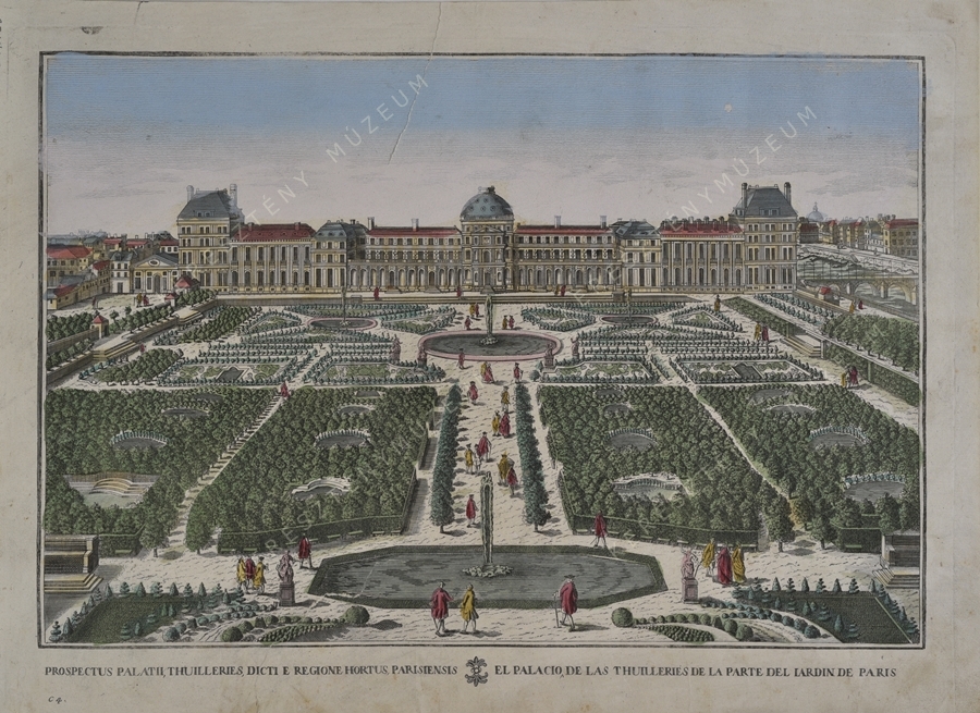 PROSPECTUS PALATII THUILLERIES DICTI E REGIONE HORTUS PARISIENSIS // EL PALACIO DE LAS THUILLERIES DE LA PARTE DEL IARDIN DE PARIS | bal alsó sarokban: C 4.